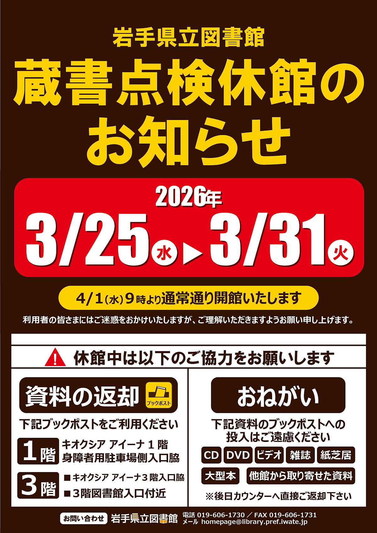 蔵書点検のため、下記の期間、臨時休館いたします。