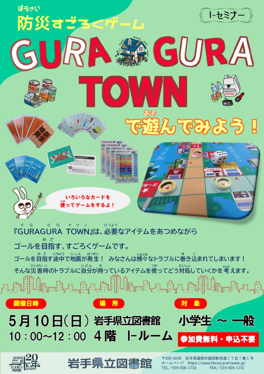 『GURAGURA TOWN』は、町の中で買い物をしながらゴールを目指す防災すごろくゲーム!